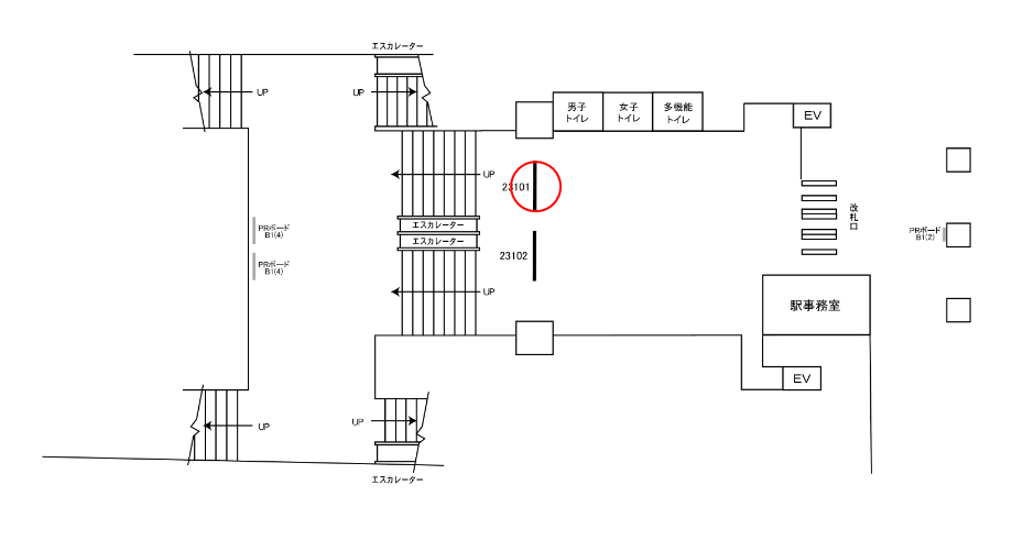 駅構内にあるこの駅看板は「これから駅を出る方」に見てもらえます。移動中に見てもらえる駅構内の駅看板は、大森海岸駅の周辺にある店舗施設の紹介や道案内に利用されています。特に駅の出口付近にある駅看板は、店舗までの距離が近く案内看板に適しています。