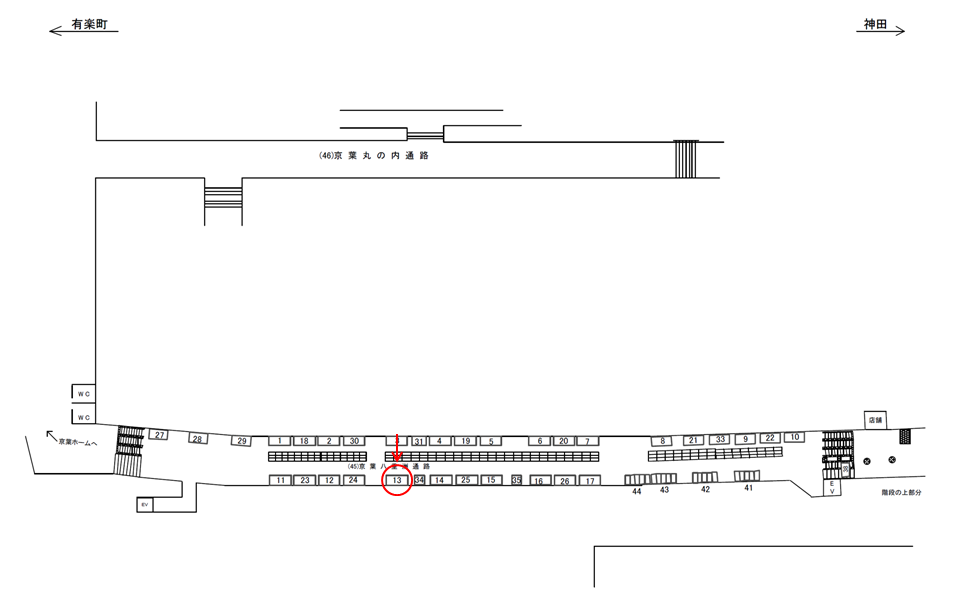 ○京八通路№41 改札内(京葉線への八重洲連絡通路) |