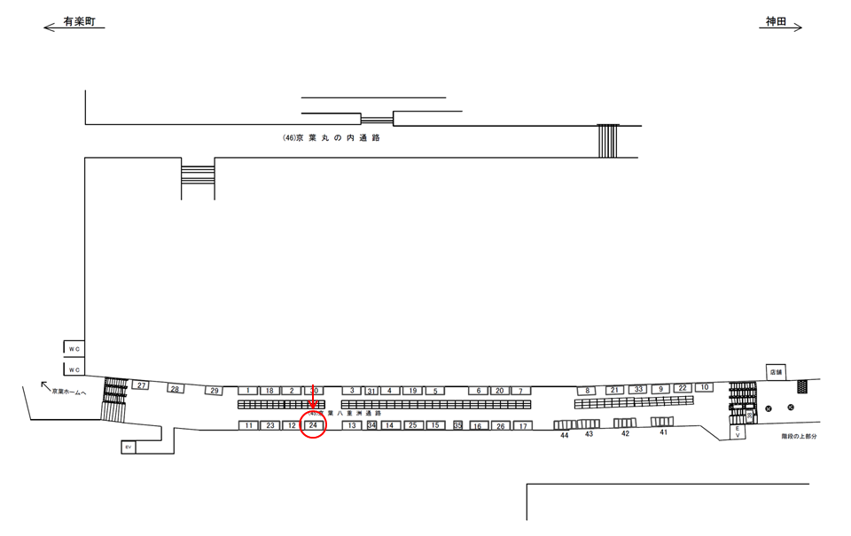 ○京八通路№23 改札内(京葉線への八重洲連絡通路) |