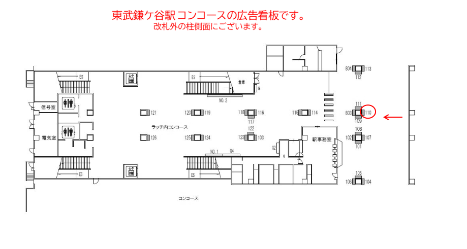 構内の中央付近の柱に設置されており、駅利用者の多くの方への訴求が期待できます。