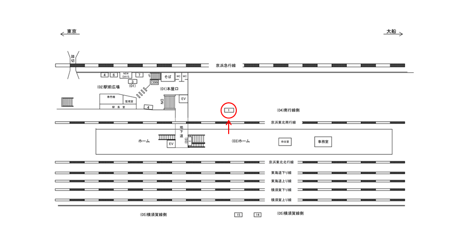 新子安駅のホーム前にあります。横浜方面の電車を待つ方の正面です。