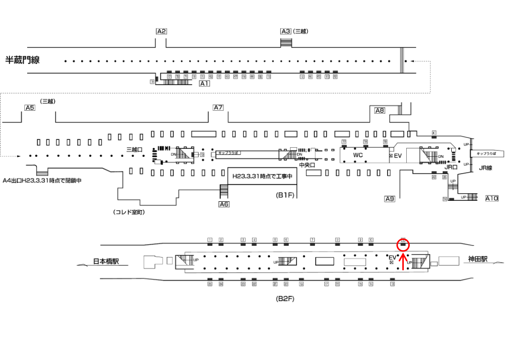 ・東京メトロ銀座線と東京メトロ半蔵門線の接続通路上にあたります。