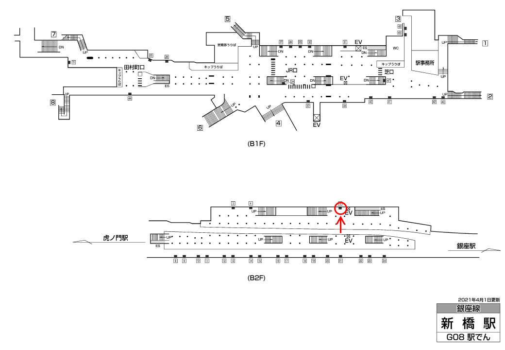 東京都港区に所在する東京メトロ銀座線の駅です。JR山手線・京浜東北線・横須賀線・東海道線・都営浅草線・ゆりかもめに乗り換え可能です。日本鉄道開業の地で日本有数のビジネス街となっており、昼夜を問わず多くのビジネスマンでにぎわっています。