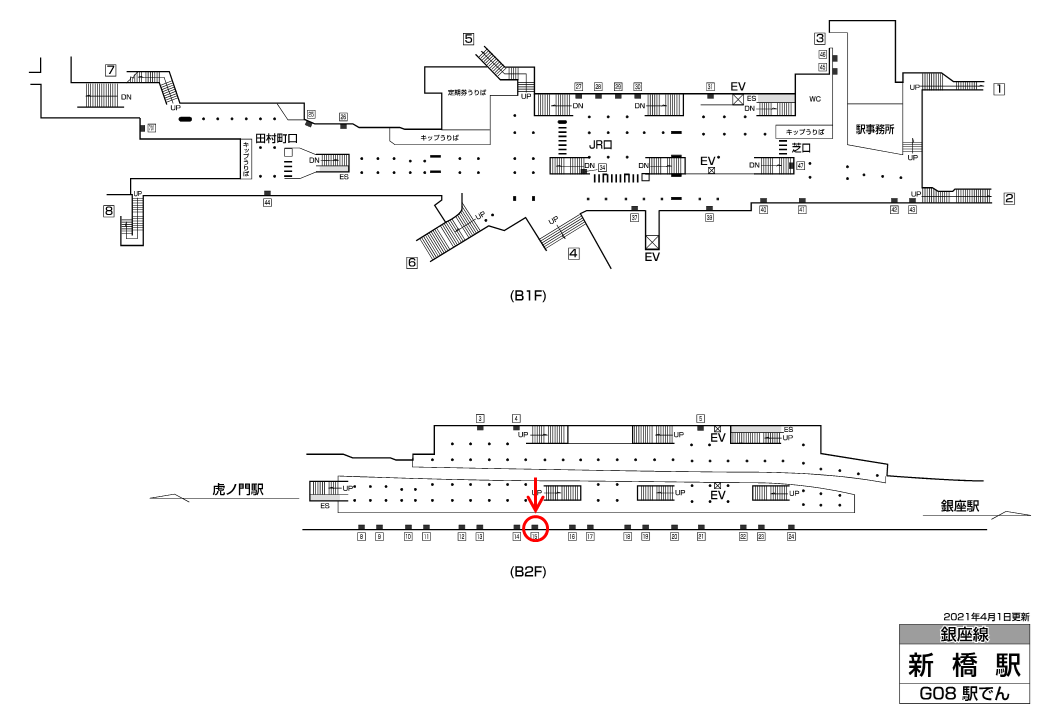 東京都港区に所在する東京メトロ銀座線の駅です。JR山手線・京浜東北線・横須賀線・東海道線・都営浅草線・ゆりかもめに乗り換え可能です。日本鉄道開業の地で日本有数のビジネス街となっており、昼夜を問わず多くのビジネスマンでにぎわっています。