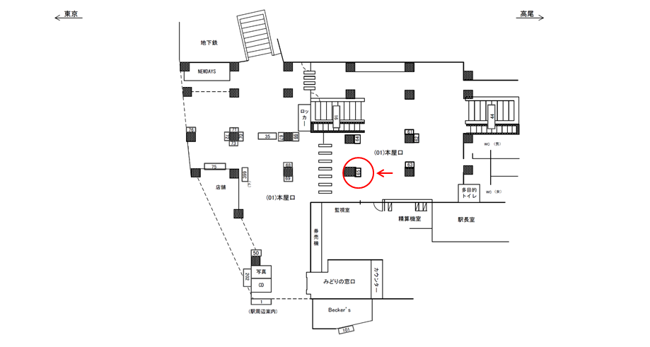 東口改札内に設置された電飾タイプの広告看板です。主に改札からホームへ向かう際にご覧頂ける位置にございます。駅利用者の移動動線上にございますので周辺店舗施設へのご案内にご利用頂けます。