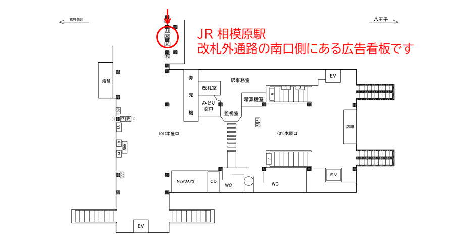 駅看板「JR 相模原駅 本屋口№20」