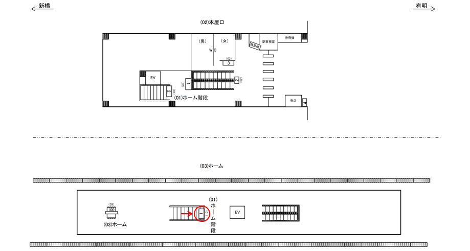 ホームから改札へ向かう際に正対する場所にございます。