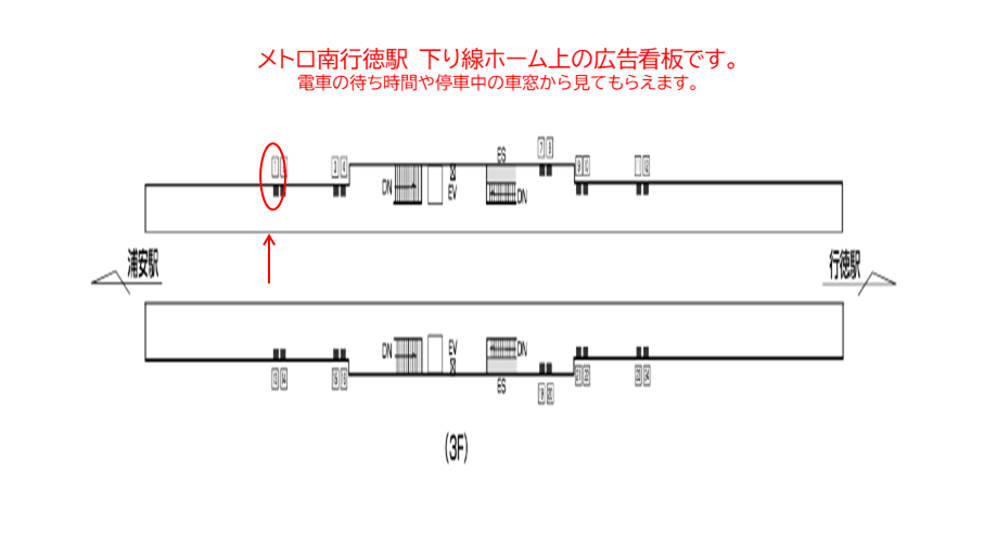 東京メトロ 南行徳駅、ホームの駅広告(駅看板)設備のご紹介です。