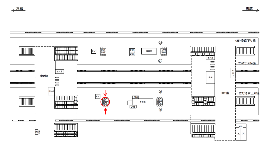 ○第3ホーム№B01&B02 ホーム上(JR高崎線上りホーム) |