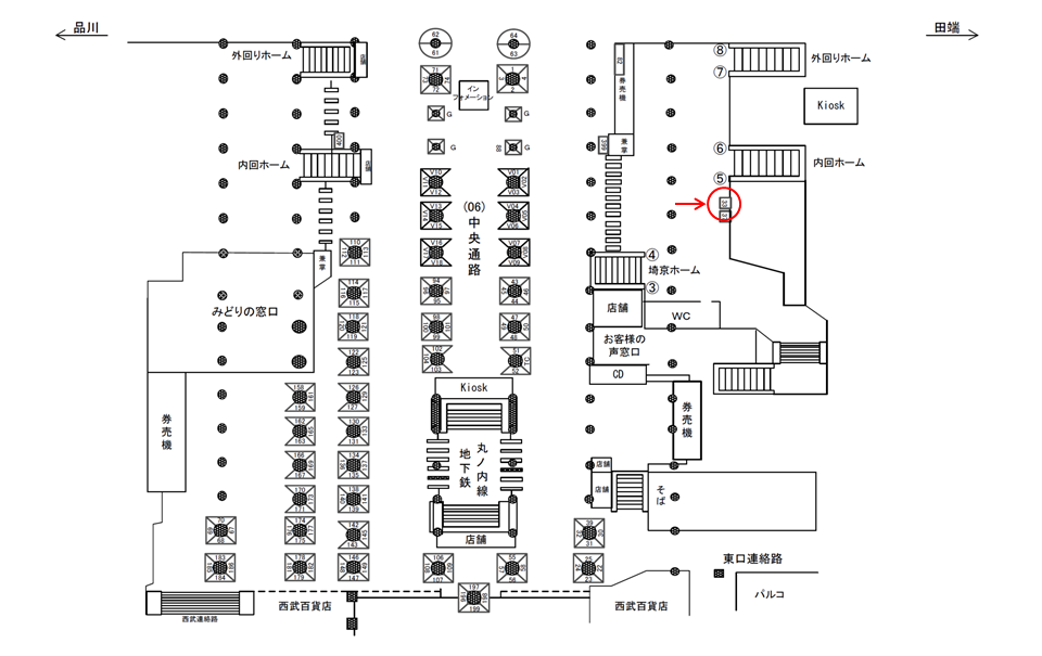 ○北口№5 改札内コンコース(北改札 山手線ホーム階段付近 柱) |
