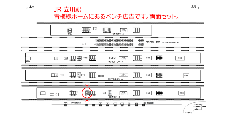 ○中央下りホーム前№137 線路前(JR中央線 立川・八王子・高尾方面) |