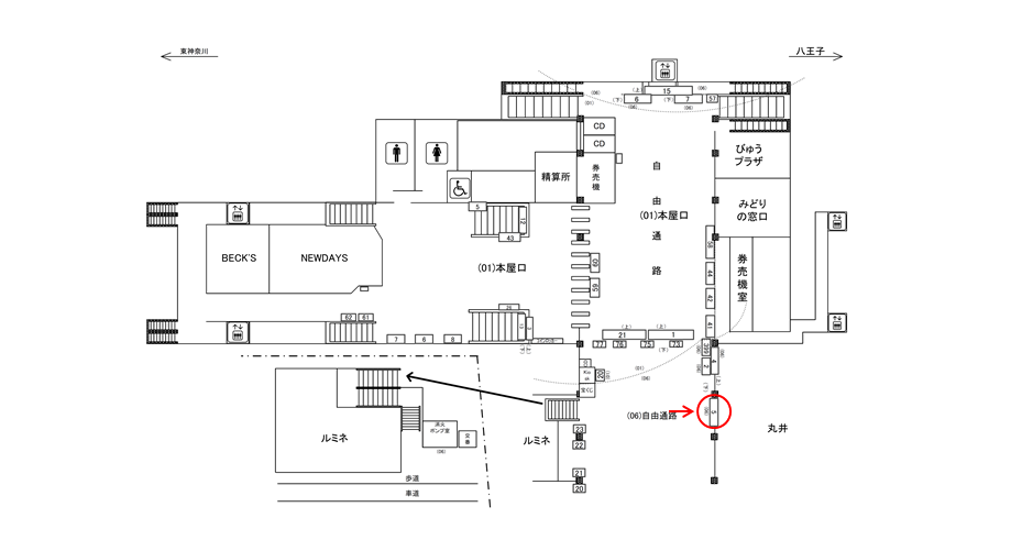 ■駅看板「JR 町田駅 自由通路№5」の広告ロケーション
