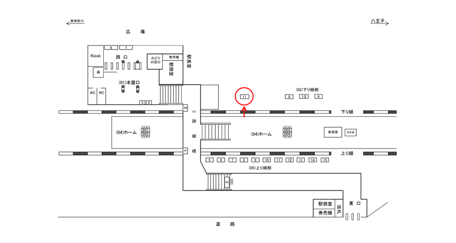 JR 大口駅、新横浜・町田・八王子方面線路前に設置された、大きな板面の広告看板です。