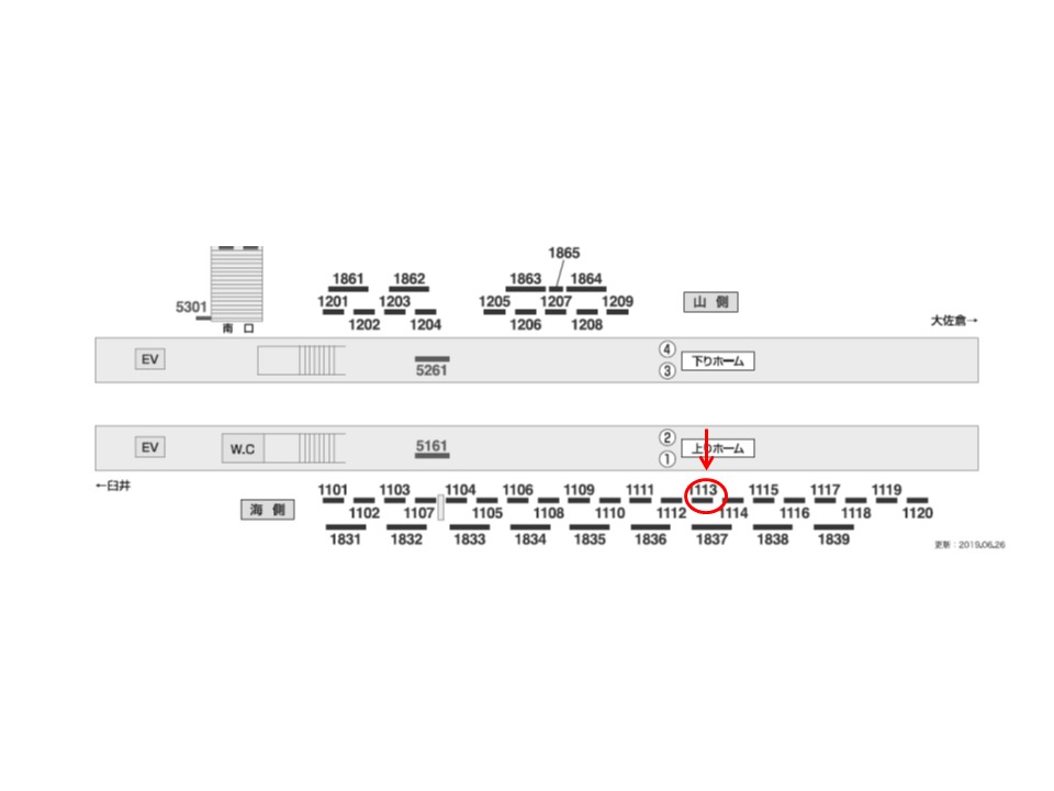 京成本線 京成佐倉駅の上りホーム(京成津田沼・京成船橋方面)の看板です。上り側で電車を待つ方に向けて毎日PR可能です。料金は割増しとなりますが、隣りの№1114/1115と3面つなぎ(横540㎝)の大型看板として掲載する事も可能です。