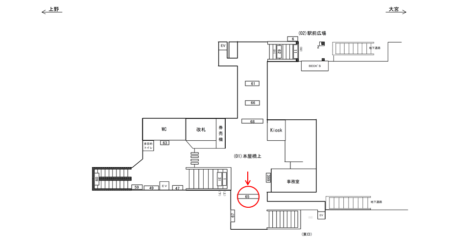 改札周辺の広告は移動動線上に見せられる広告が多く、駅周辺の店舗施設の案内や誘導に適しています。特にこちらの看板は東口方面へ向かう方にへの周知に適したロケーションですので、東口立地の店舗新設で駅広告をお考えの方におススメです。