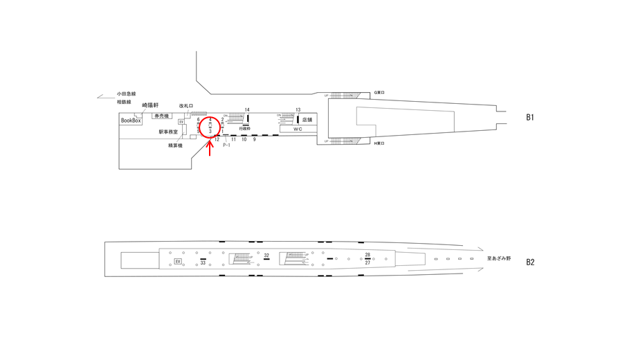 駅構内にある駅看板は「これから電車に乗る方」もしくは「駅を出る方」に見てもらえます。いずれにしても駅を利用するタイミングで広告に接触します。移動中に見てもらえる駅構内の駅看板は、湘南台駅の周辺にある店舗施設の紹介や道案内に利用されています。特に駅の出口付近にある駅看板は、店舗までの距離が近く案内看板に適しています。