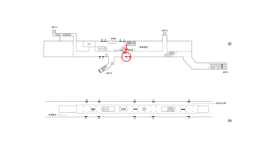 駅構内にある駅看板は「これから電車に乗る方」もしくは「駅を出る方」に見てもらえます。いずれにしても駅を利用するタイミングで広告に接触します。移動中に見てもらえる駅構内の駅看板は、踊場駅の周辺にある店舗施設の紹介や道案内に利用されています。特に駅の出口付近にある駅看板は、店舗までの距離が近く案内看板に適しています。