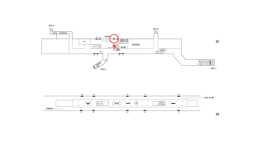 駅構内にある駅看板は「これから電車に乗る方」もしくは「駅を出る方」に見てもらえます。いずれにしても駅を利用するタイミングで広告に接触します。移動中に見てもらえる駅構内の駅看板は、踊場駅の周辺にある店舗施設の紹介や道案内に利用されています。特に駅の出口付近にある駅看板は、店舗までの距離が近く案内看板に適しています。