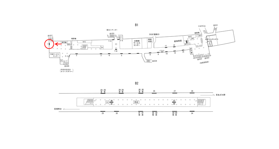 駅構内にある駅看板は「これから電車に乗る方」もしくは「駅を出る方」に見てもらえます。いずれにしても駅を利用するタイミングで広告に接触します。移動中に見てもらえる駅構内の駅看板は、上大岡駅の周辺にある店舗施設の紹介や道案内に利用されています。特に駅の出口付近にある駅看板は、店舗までの距離が近く案内看板に適しています。