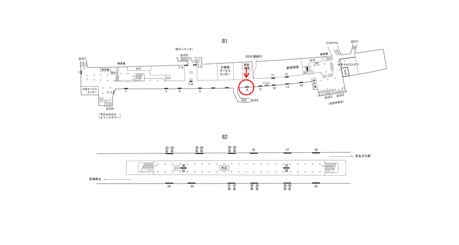 駅構内にある駅看板は「これから電車に乗る方」もしくは「駅を出る方」に見てもらえます。いずれにしても駅を利用するタイミングで広告に接触します。移動中に見てもらえる駅構内の駅看板は、上大岡駅の周辺にある店舗施設の紹介や道案内に利用されています。特に駅の出口付近にある駅看板は、店舗までの距離が近く案内看板に適しています。