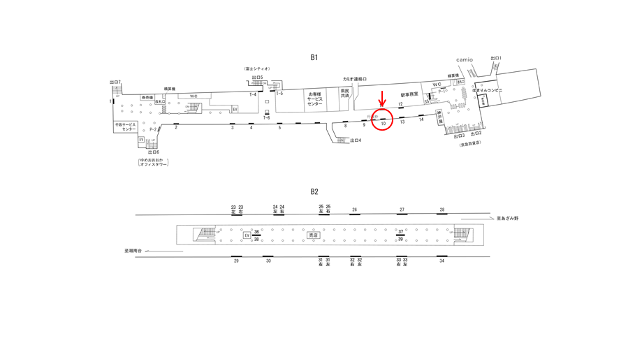 駅構内にある駅看板は「これから電車に乗る方」もしくは「駅を出る方」に見てもらえます。いずれにしても駅を利用するタイミングで広告に接触します。移動中に見てもらえる駅構内の駅看板は、上大岡駅の周辺にある店舗施設の紹介や道案内に利用されています。特に駅の出口付近にある駅看板は、店舗までの距離が近く案内看板に適しています。