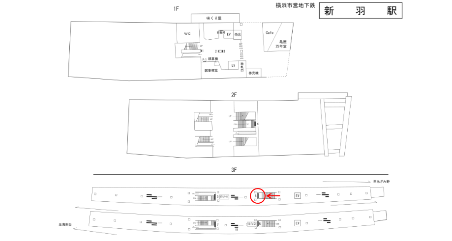 横浜市営地下鉄 新羽駅の階段の正面にある駅看板です。