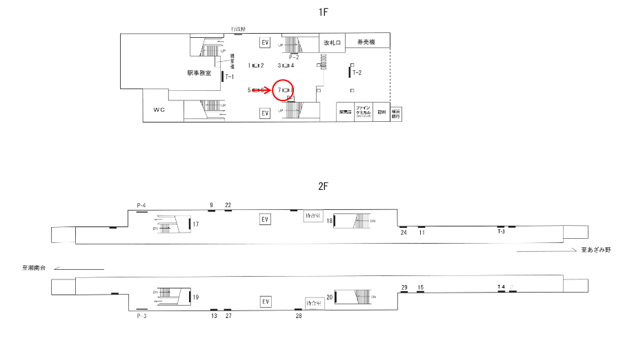 駅構内にある駅看板は「これから電車に乗る方」もしくは「駅を出る方」に見てもらえます。いずれにしても駅を利用するタイミングで広告に接触します。移動中に見てもらえる駅構内の駅看板は、仲町台駅の周辺にある店舗施設の紹介や道案内に利用されています。特に駅の出口付近にある駅看板は、店舗までの距離が近く案内看板に適しています。