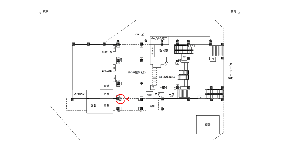 移動中に見てもらえる駅構内の駅看板は、JR高円寺駅の周辺にある店舗施設の紹介や道案内に利用されています。特に駅の出口付近にある駅看板は、店舗までの距離が近く案内看板に適しています。