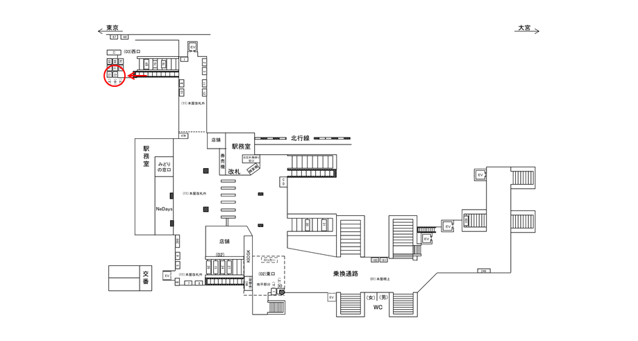 ○本屋橋上№30 改札内コンコース(ホーム階段正面 JR京浜東北線上りホーム) |