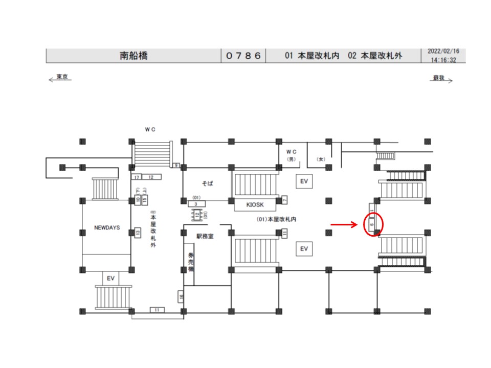 JR京葉線 南船橋駅の改札内に設置されている看板です。改札から列車ホームへ向かう途中に見えます。