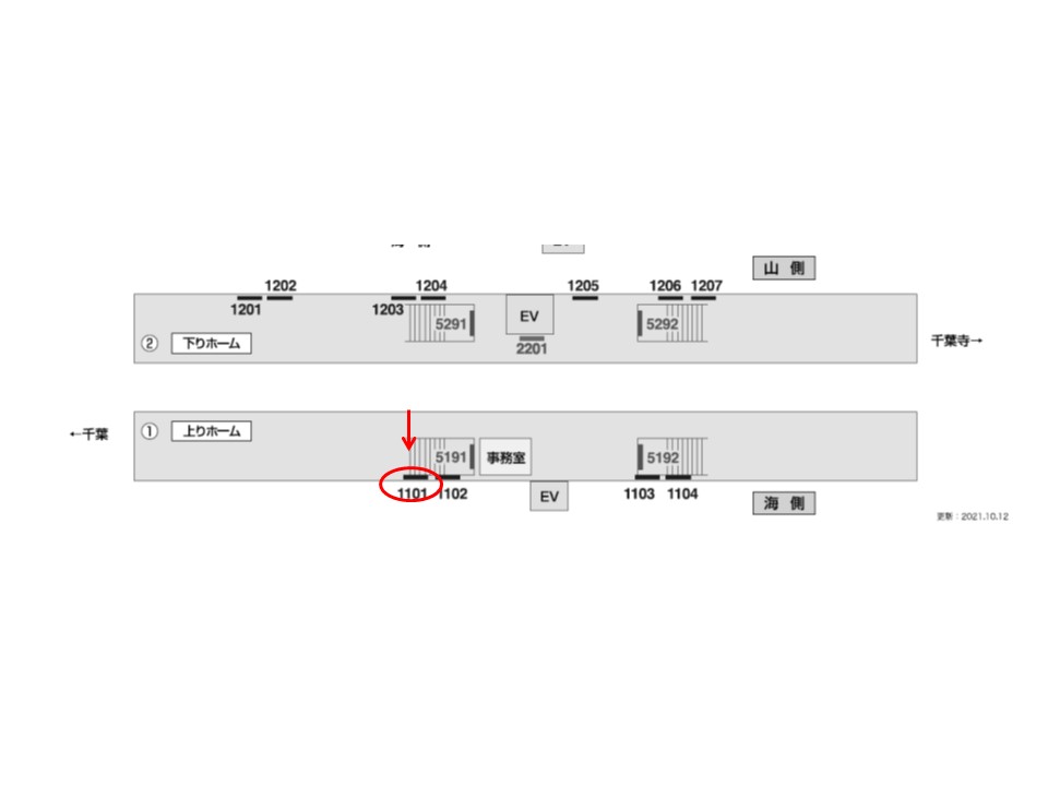 №5192はちはら台寄りの上りホームの階段正面に位置しております。