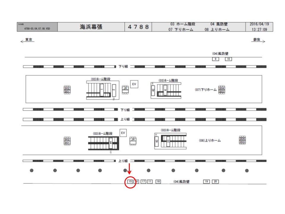 海浜幕張駅 ホーム腰壁シート(下りホーム東京方)
