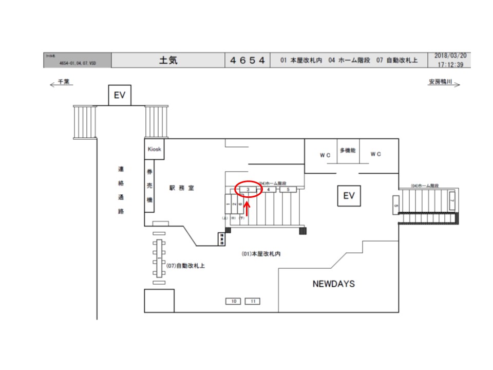 JR外房線 土気(とけ)駅のホーム階段にある看板です。