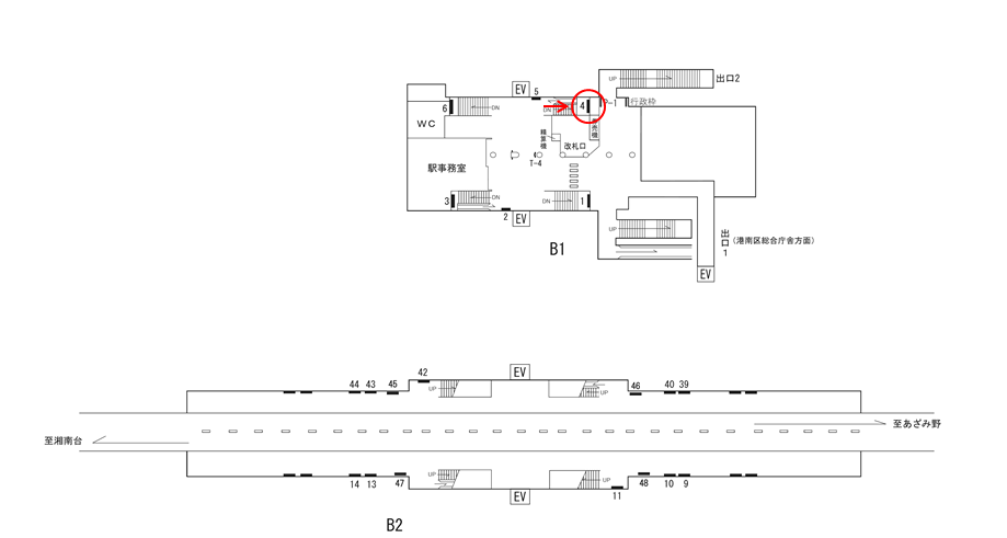 横浜市営地下鉄 港南中央駅の階段の正面にある駅看板です。
