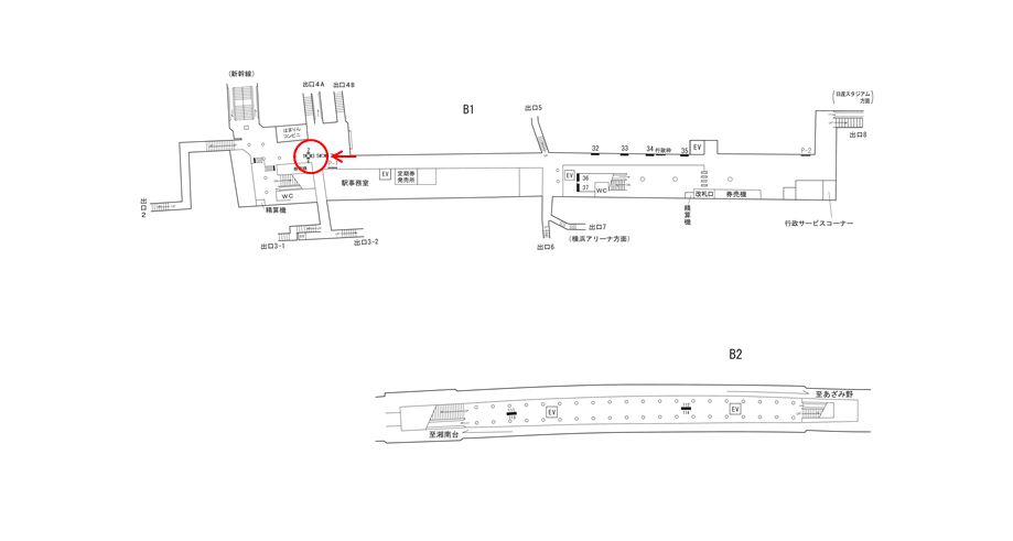 横浜市営地下鉄 新横浜駅の駅構内にある駅看板です。
