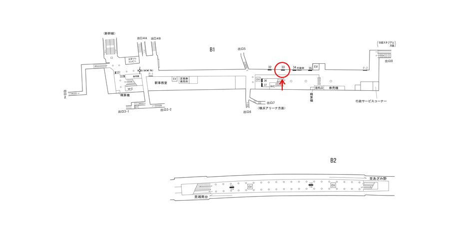 横浜市営地下鉄 新横浜駅の駅構内にある駅看板です。