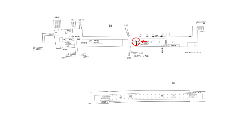 横浜市営地下鉄 新横浜駅の階段の正面にある駅看板です。