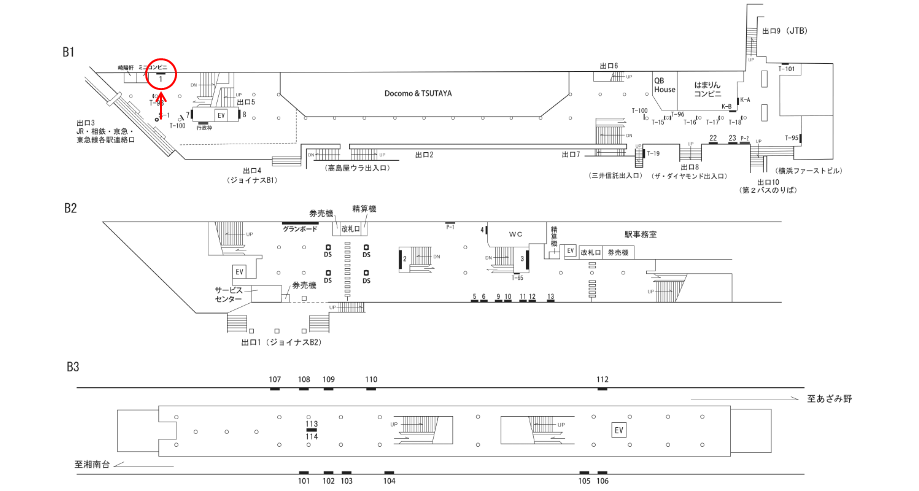 改札外(地下1階 JR・相鉄・京急・東急連絡口出口方面)