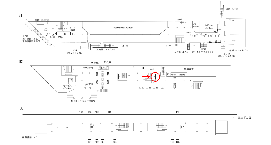 ○№1 改札外(地下1階 JR・相鉄・京急・東急連絡口出口方面) |