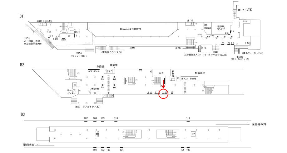 ○№7 改札外(地下1階 JR・相鉄・京急・東急連絡口出口方面) |