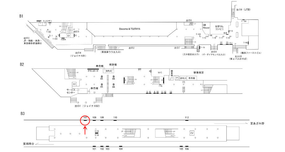 ○№1 改札外(地下1階 JR・相鉄・京急・東急連絡口出口方面) |