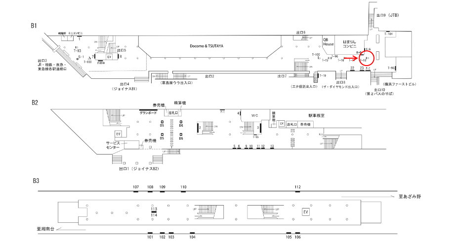 ○№1 改札外(地下1階 JR・相鉄・京急・東急連絡口出口方面) |