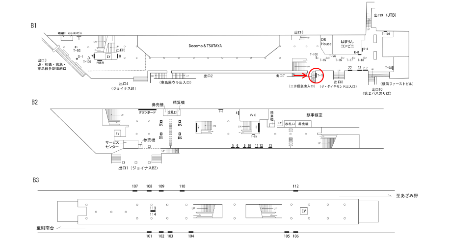 ○№7 改札外(地下1階 JR・相鉄・京急・東急連絡口出口方面) |