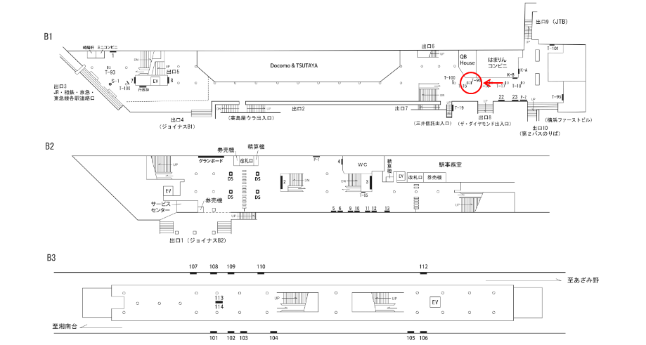 ○№T-100 改札外(地下1階) |