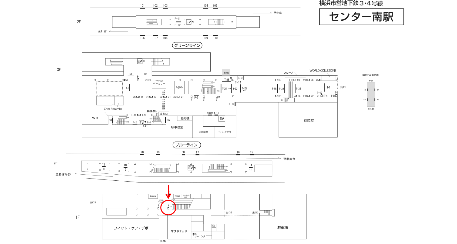 横浜市営地下鉄 センター南駅の駅構内にある駅看板です。