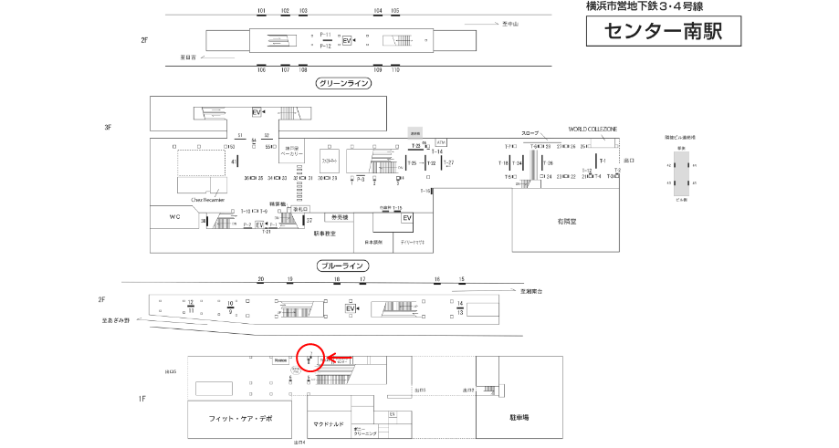 横浜市営地下鉄 センター南駅の駅構内にある駅看板です。
