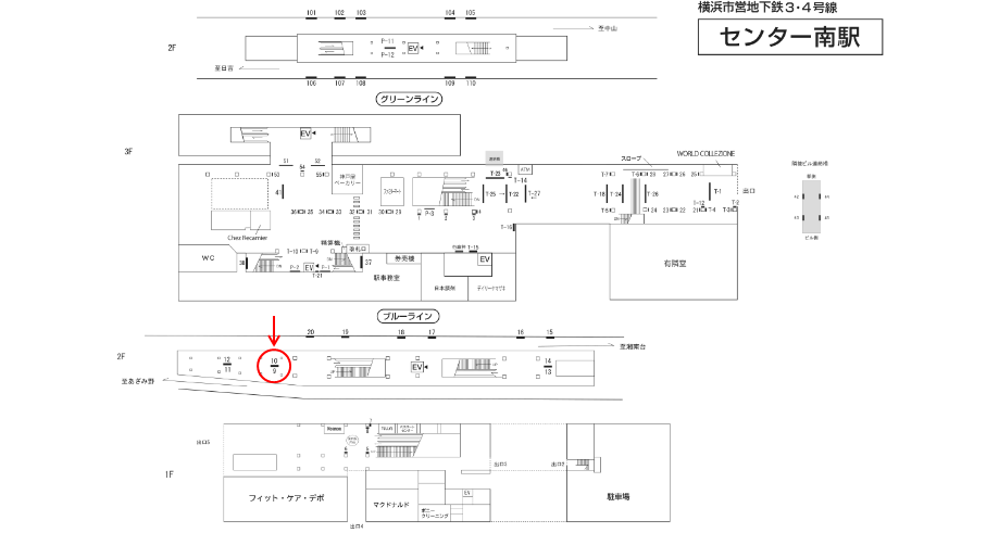 横浜市営地下鉄 センター南駅のホームにある駅看板です。