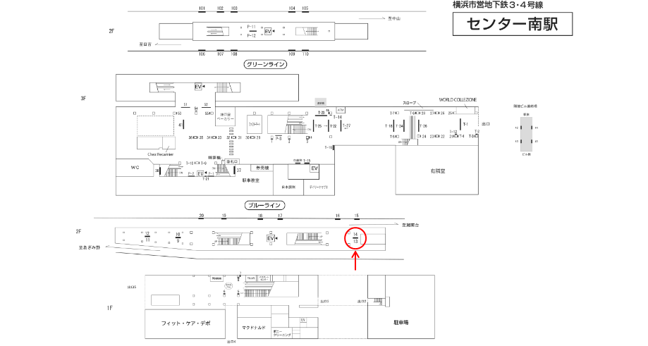 横浜市営地下鉄 センター南駅のホームにある駅看板です。