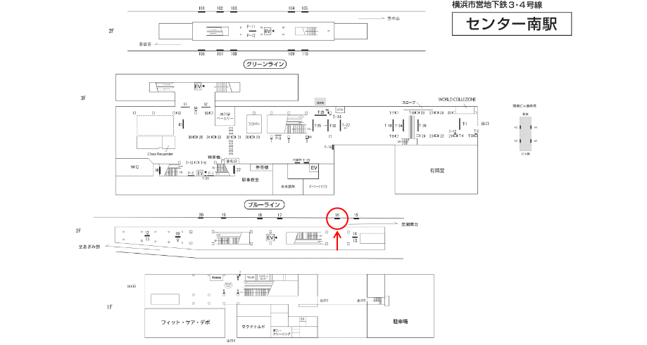 横浜市営地下鉄 センター南駅の線路前にある駅看板です。
