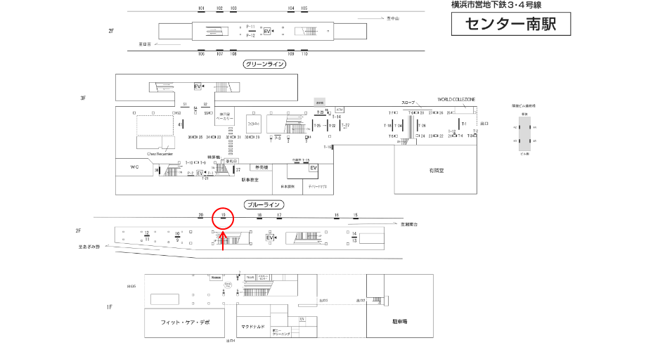 横浜市営地下鉄 センター南駅の線路前にある駅看板です。